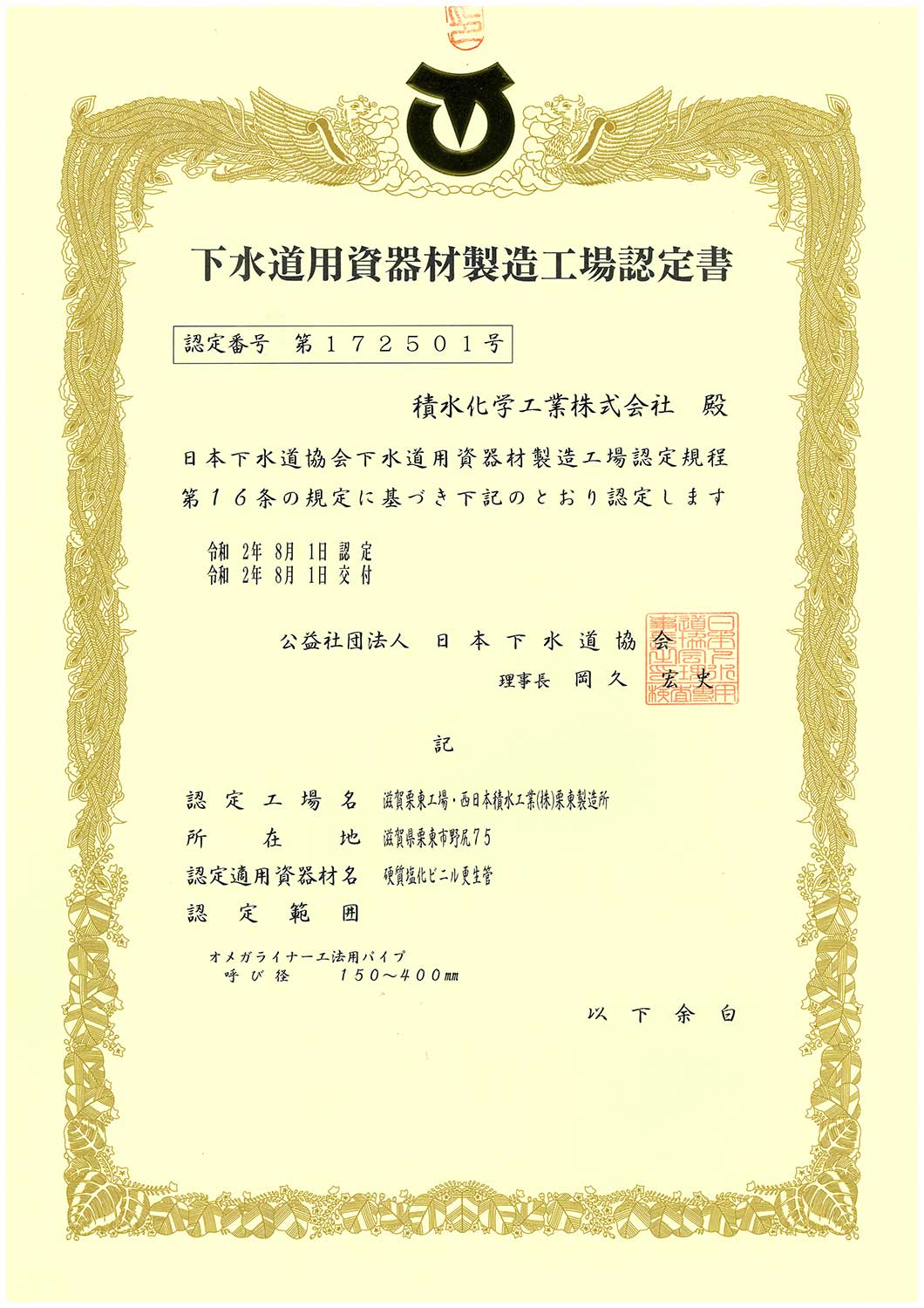 (公社)日本下水道協会の認定工場で