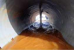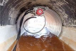 徹底した施工機材の小型化により、流下阻害を軽減しました。高水深管きょ、ゲリラ豪雨等による急な水位上昇にも対応できます。