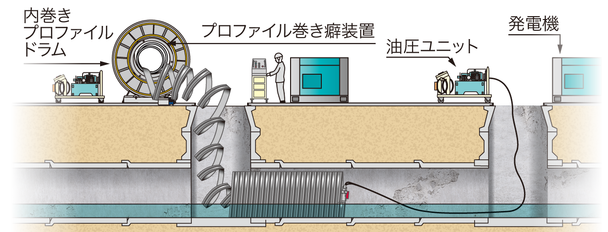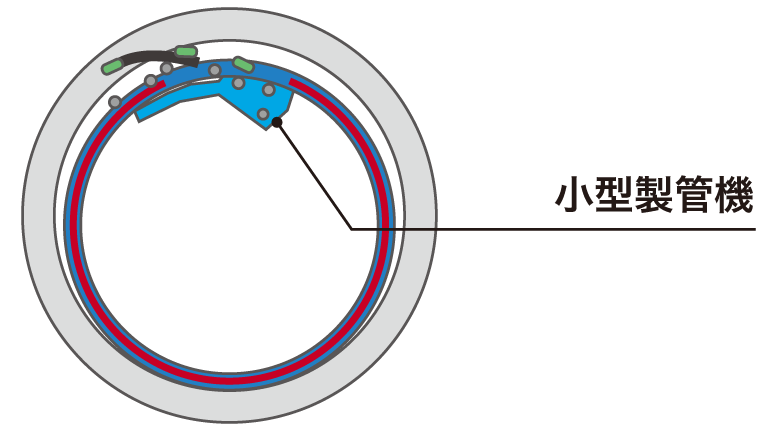 2.管内の小型製管機へプロファイルを供給し嵌合します。
