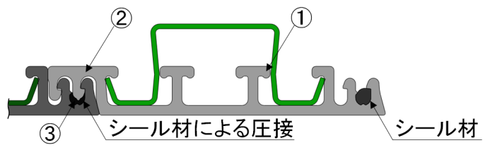 硬質塩化ビニル・スチール補強材・かん合部シール材からなる複合材料であり