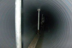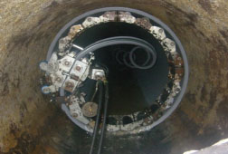 2.マンホール内に設置した牽引式製管機でプロファイルを篏合する。