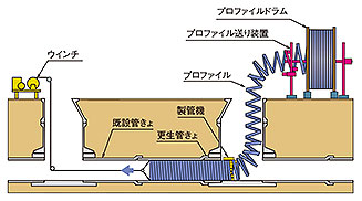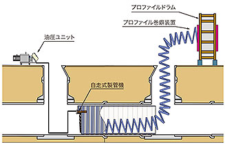 2.管内の自走式製管機へプロファイルを供給し篏合する。