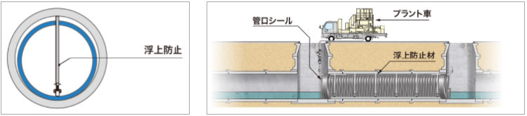 ※小口径の場合は更生管内にチェーンを引込んだ後、水を入れて浮上を防止します。